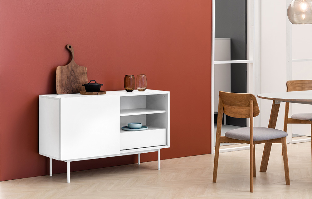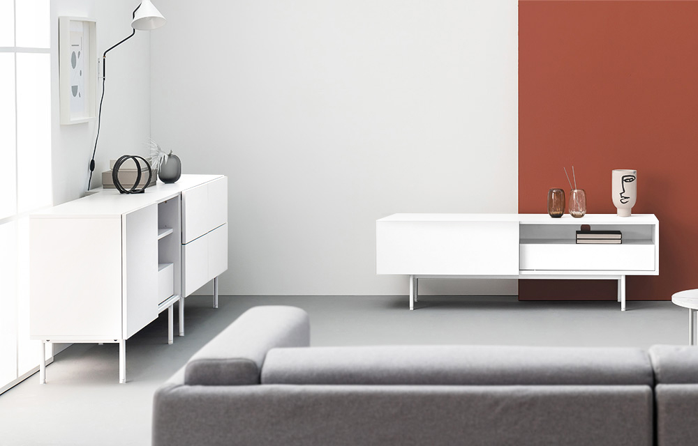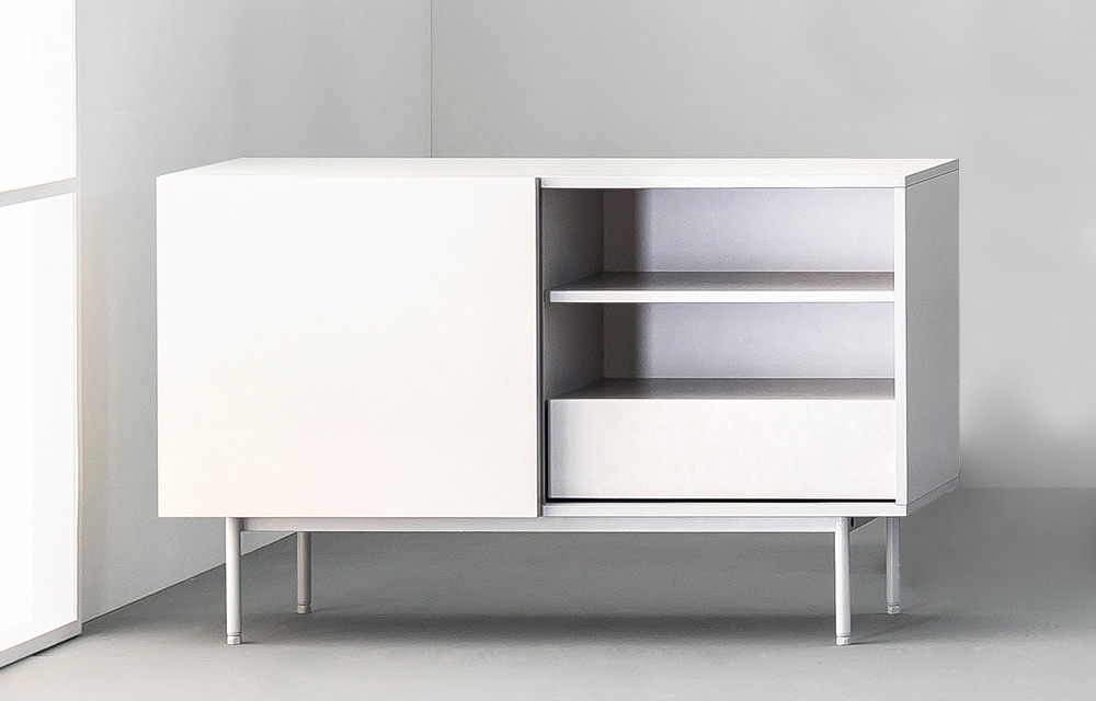 #손잡이가 없다고 당황하지 마세요. 푸시도어 방식으로 제품의 형태 안에 녹아 있어요. 비밀의 문처럼 열리는 (힌지형·미닫이형 도어, 서랍형, 선반형의) 다양한 수납공간으로 깔끔한 공간을 만들어보세요. # 어떤 컬러와도 조화로운, 중성적인 애쉬그레이는 바일레의 아이덴티티입니다.